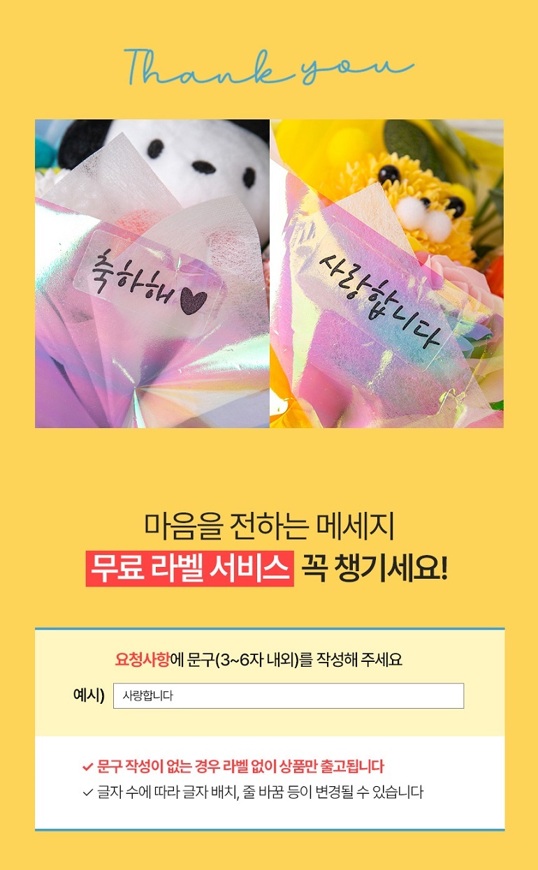 - ÆÐŰÁö, ¼±¹° »óÀÚ µî ¿É¼ÇÀ» Ãß°¡ÇÏ¿© ¹è¼Û ÈÄ ¹ÝǰµÈ »óǰÀÇ ¼±¹°»óÀÚ°¡ ÈѼյǾú°Å³ª µ¿ºÀÇÏÁö ¾ÊÀº °æ¿ì, ÇØ´ç ºñ¿ë °øÁ¦ ÈÄ È¯±ÞµÉ ¼ö ÀÖ½À´Ï´Ù.