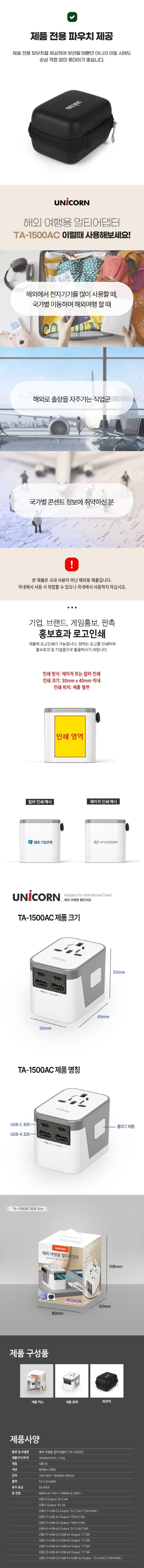 À¯´ÏÄÜ TA-1500AC ÇØ¿Ü¿©Çà¿ë¸ÖƼ¾î´ðÅÍ 4´ëµ¿½ÃÃæÀü °¡´É Àü¿ëÆÄ¿ìÄ¡ // 200¿©°³±¹ »ç¿ë°¡´É