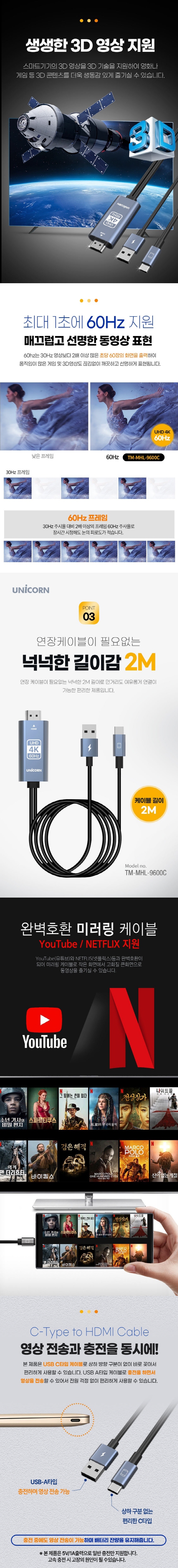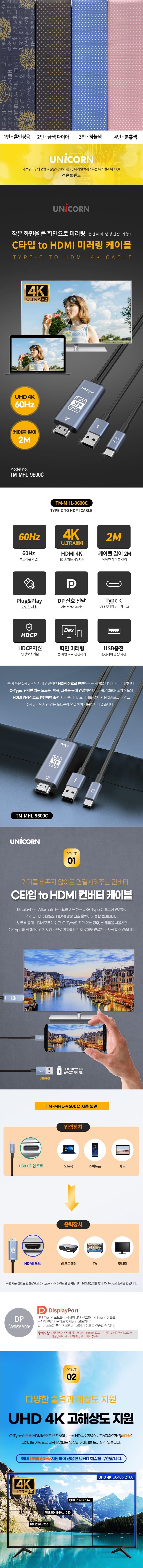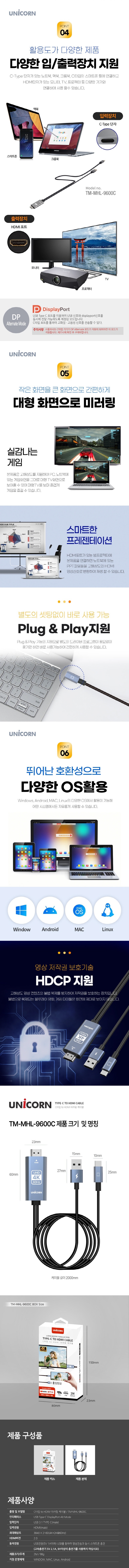 À¯´ÏÄÜ USB CŸÀÔ to HDMI 4K 60Hz ¹Ì·¯¸µÄÉÀÌºí ½º¸¶Æ®Æù µ¿½ÃÃæÀü TM-MHL-9600C
